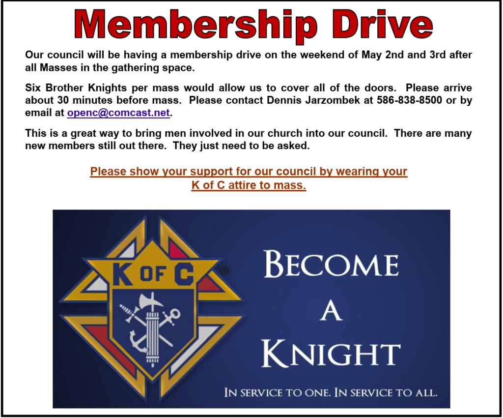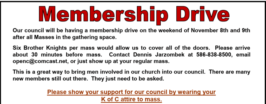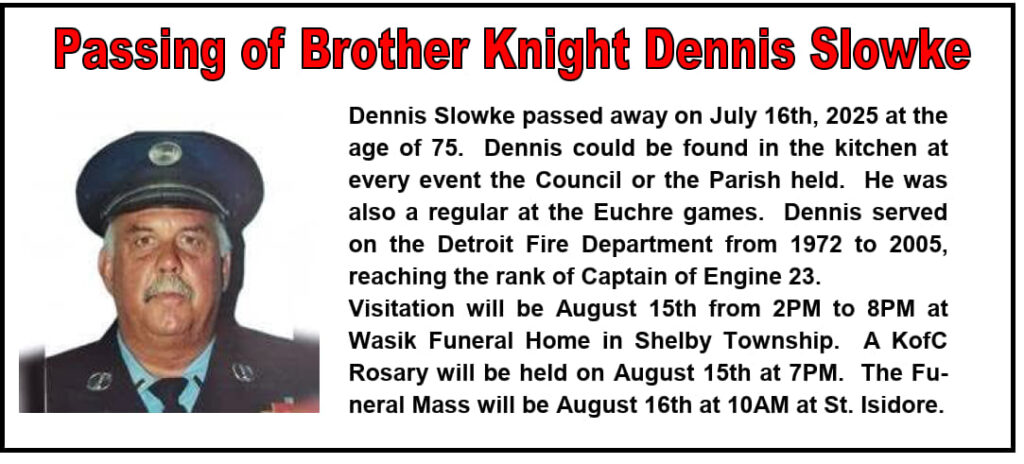 St. Isidore Knights of Columbus18201 23 Mile Rd.Macomb, MI 48042